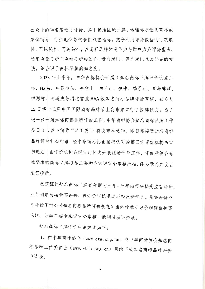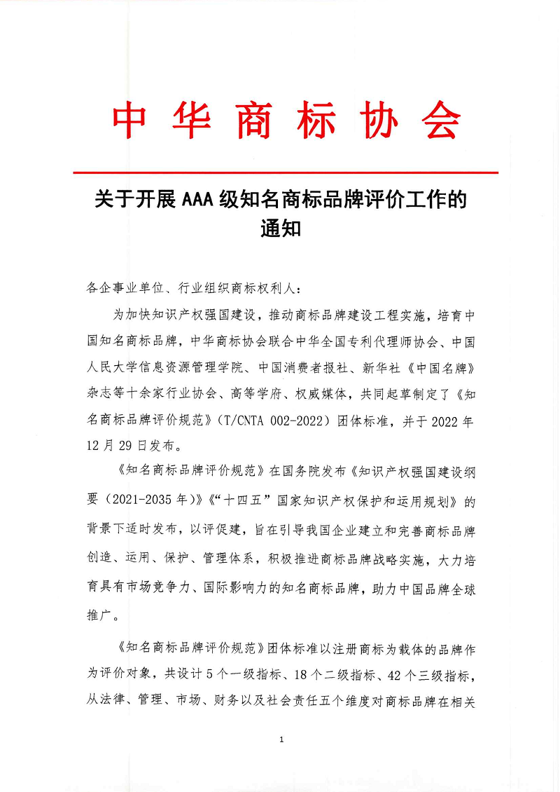 附件:关于开展AAA级知名商标品牌评价工作的通知